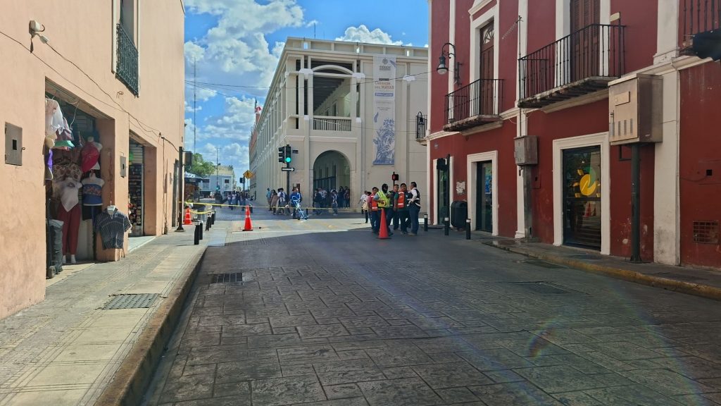 Brigadistas de Protección Civil con apoyo de la Policía Municipal de Mérida acordonaron el cruce de la 62 con 61.
