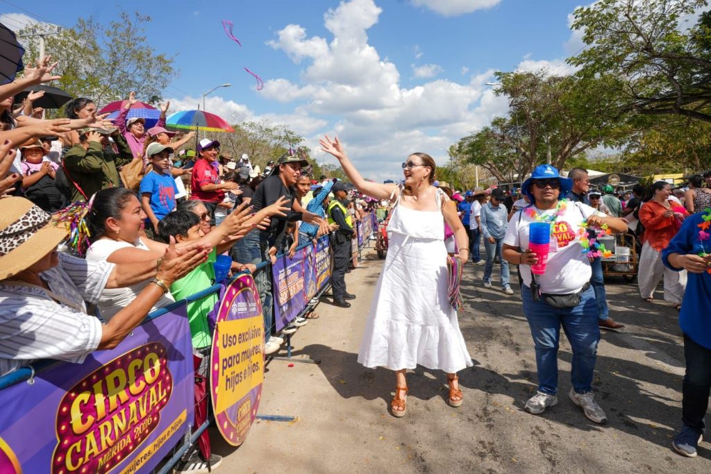 Gracias a los casi 250 mil asistentes a Ciudad Carnaval por hacer posible una tradición segura, ordenada y en comunidad, afirmó la alcaldesa Cecilia Patrón Laviada durante el último desfile de Circo Carnaval Mérida 2026.