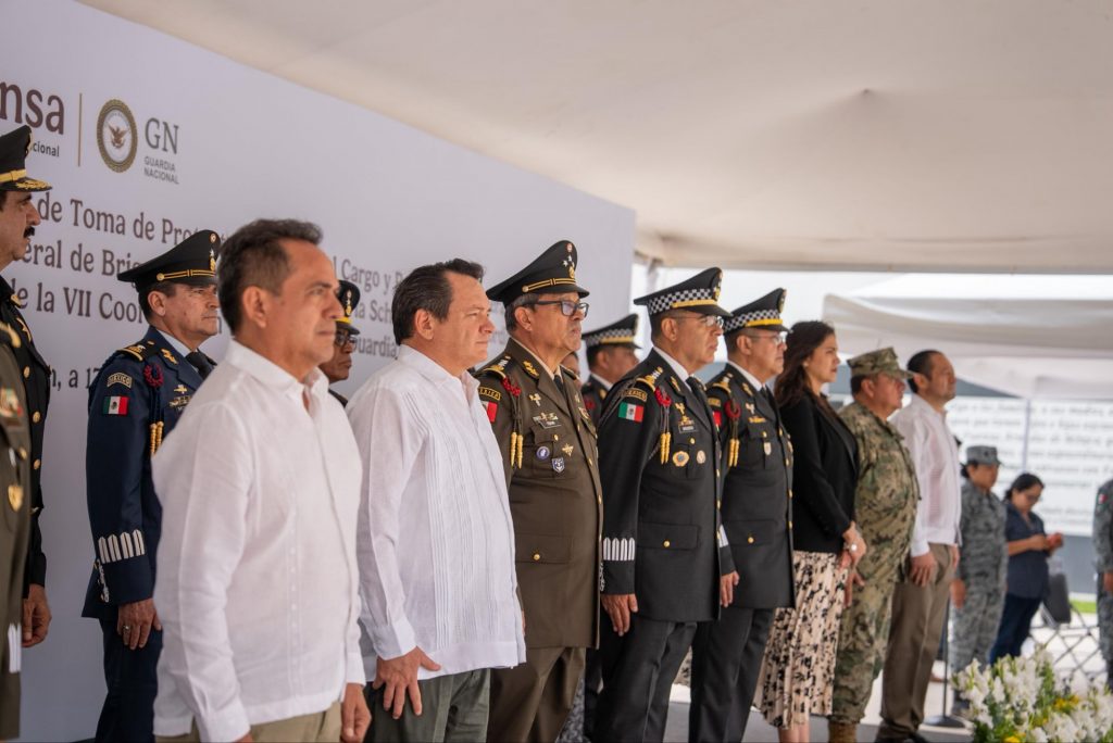 El Gobernador Joaquín Díaz Mena acudió como invitado de honor a la toma de protesta, posesión del cargo y protesta de bandera del general de brigada de Guardia Nacional Estado Mayor, Óscar Rentería Schazarino, como coordinador interino de la VII Coordinación Territorial de la Guardia Nacional.