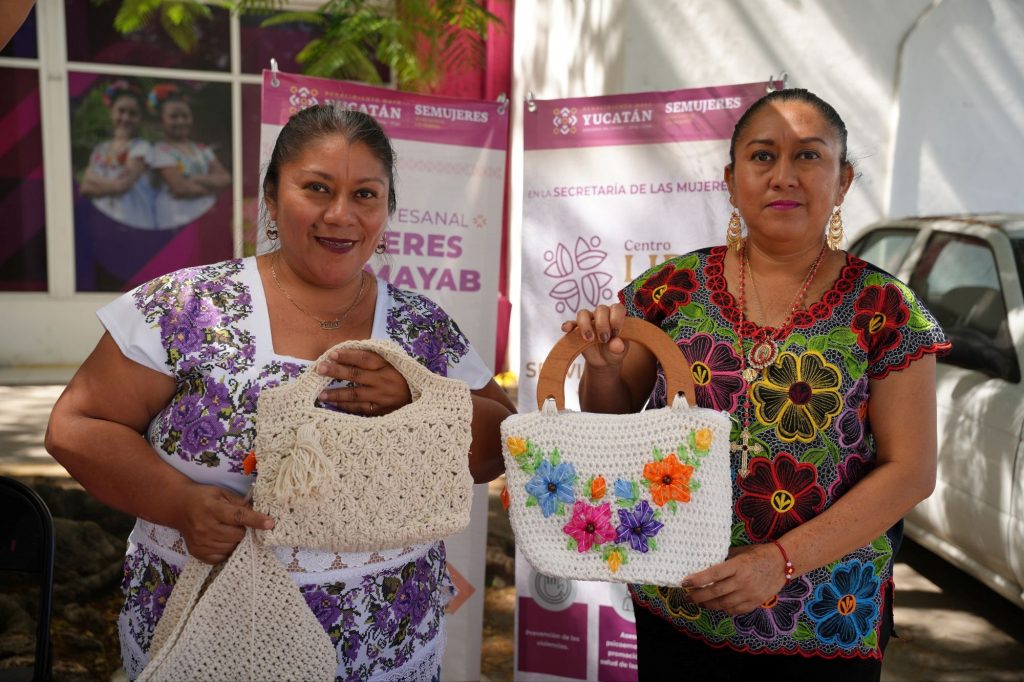 Emprendedoras de seis municipios participaron en la Primera Feria Artesanal por los Derechos de las Mujeres del Mayab, organizada por la Secretaría de las Mujeres.