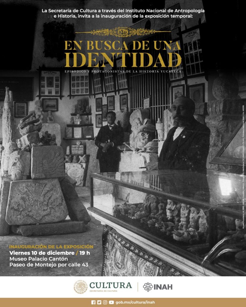 Mérida, 8 de diciembre de 2021.- La exposición “En busca de una identidad. Episodios y protagonistas de la historia yucateca” podrá ser visitada a partir del 11 de diciembre en la planta alta del Museo Regional de Yucatán “Palacio Cantón”, de martes a sábado de 8 a 17 horas.