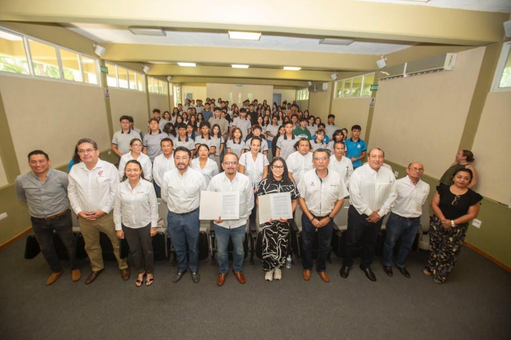 La firma del convenio, que beneficiará a más de 4 mil 600 estudiantes de Mérida y Valladolid, se realizó en el auditorio de la Escuela Preparatoria Estatal Núm. 10 “Rubén H. Rodríguez Moguel”, con la participación del director de Educación Media Superior, Sergio Victoria Palma, en representación del secretario de Educación, Liborio Vidal Aguilar, Ilse Álvarez Ramírez, coordinadora general del programa Cuantrix y el director del plantel, Esteban Cervera Pavía.