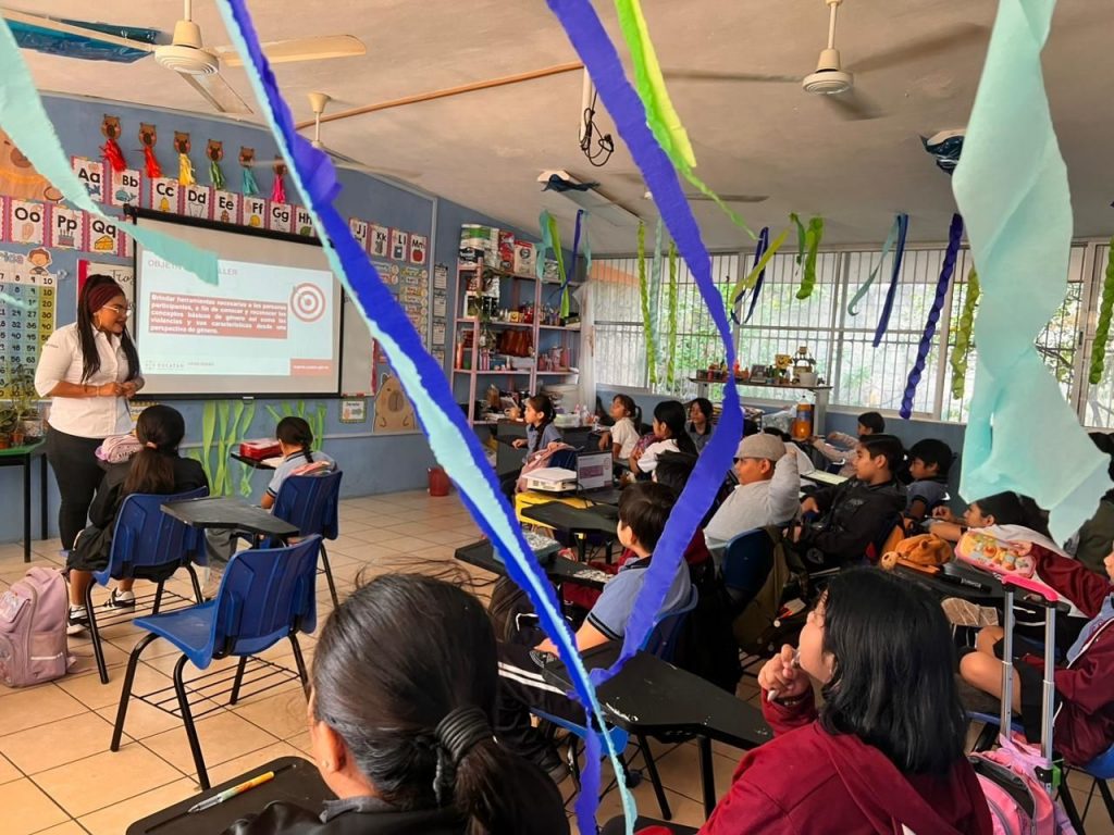 En Mérida, en la escuela primaria “Manuel Sales Cepeda”, se impartieron los talleres “Mi espacio seguro” y “Semillas de paz” ante 120 estudiantes, con información para identificar la violencia en el ámbito escolar en sus distintas manifestaciones y fomentar el buen trato, como base para construir entornos escolares seguros.