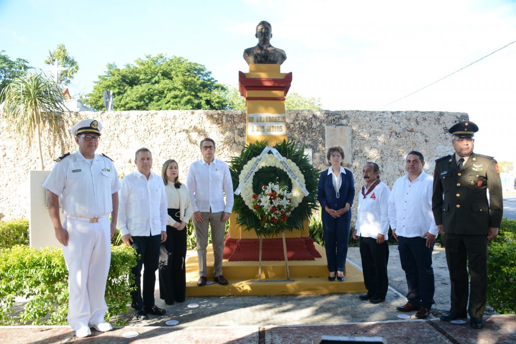Tras la entonación del himno en honor al prócer de Motul, las autoridades civiles y militares encabezaron sendas ofrendas florales y guardias de honor, una ante el busto erigido en su memoria y otra en la Rotonda de los Hombres Ilustres al interior del Cementerio General, donde descansan los restos del también periodista, así como de los caudillos que fueron asesinados junto con él.