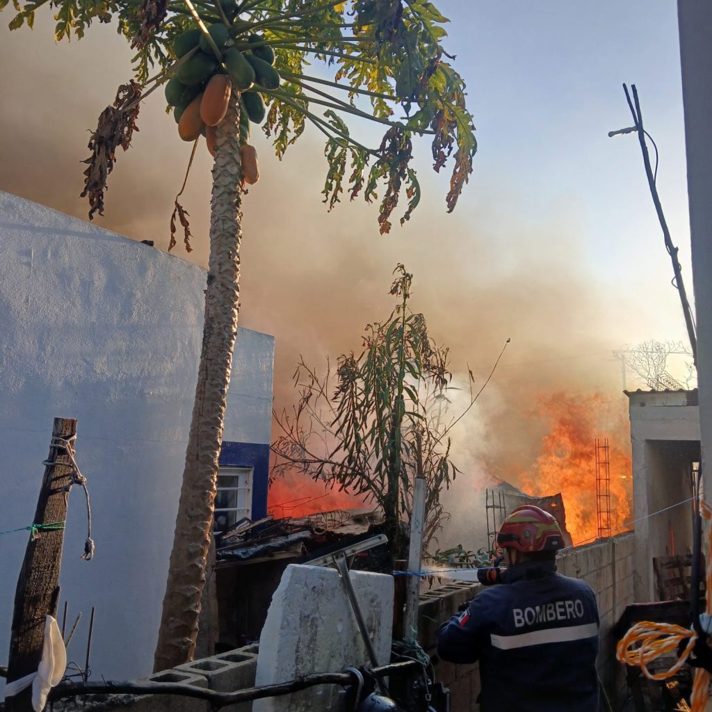 Agentes de la SSP, con apoyo de personal especializado en control de incendios y servicios de emergencia, realizaron las maniobras para sofocar las llamas, asegurar la zona y reducir riesgos para las familias del sector. En el lugar también se reportó que un perro perdió la vida.