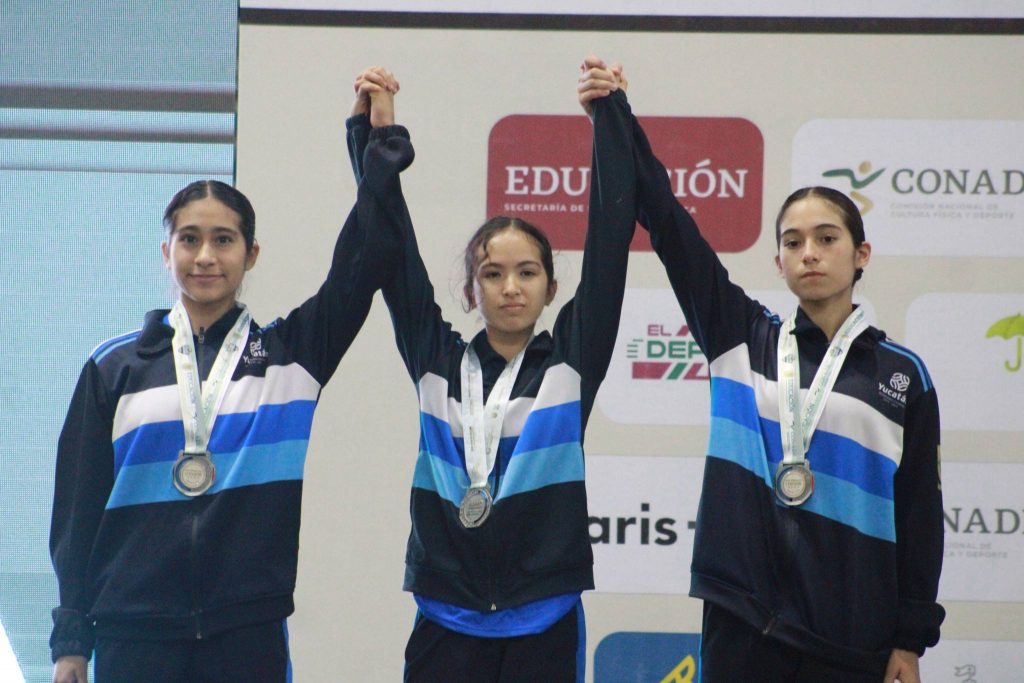 Así mismo el equipo juvenil femenil, integrado por Ana Paula Candila Medoza, Valentina Haas Hu y Lucía Juárez Balderas conquistaron la medalla de plata en la competencia, las yucatecas que tuvieron una limpia ejecución en su rutina fueron superadas por el conjunto de Baja California compuesto por Estrella Jiménez Ortega, Karina Velarde Moncada y Lía Chavarin Avila, en esta categoría y modalidad las medallas de bronce fueron para los equipos de Oaxaca con Gabriela Hernández, Sayuri Ojeda y Yaretzi Torralba y de Jalisco con las seleccionadas Narda Abad Pizano, María José Torres Sánchez y Miley Rosales Torres.