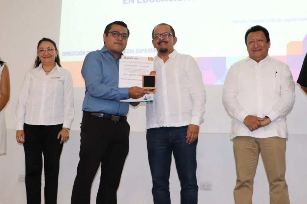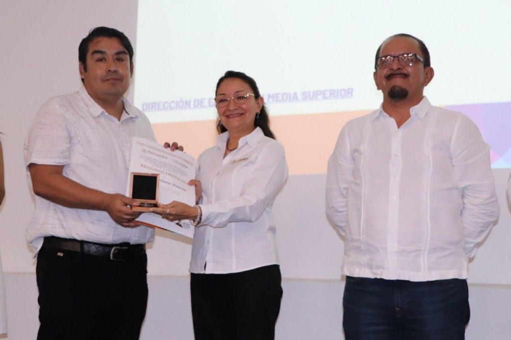Asimismo, recibieron reconocimiento Enrique Madera Rejón, del CBTA 284 de Tunkás, por el proyecto “El aprendizaje continuo en mi práctica educativa y la implementación de las progresiones del pensamiento matemático”; Jairo Torrez Martínez, del COBAY plantel Xcan, por su propuesta “El pensamiento matemático para resolver problemas en mi comunidad”; y los maestros Nayelly Burgos Enríquez y Miguel Góngora Martín.