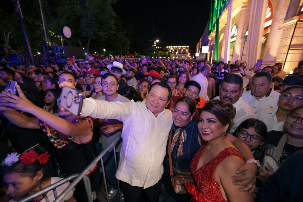 Miles de familias se congregaron la noche de este lunes en la Plaza Grande de Mérida para presenciar la ceremonia del Grito de Independencia, encabezada por el Gobernador Joaquín Díaz Mena, en lo que representó su primera conmemoración oficial al frente del estado.