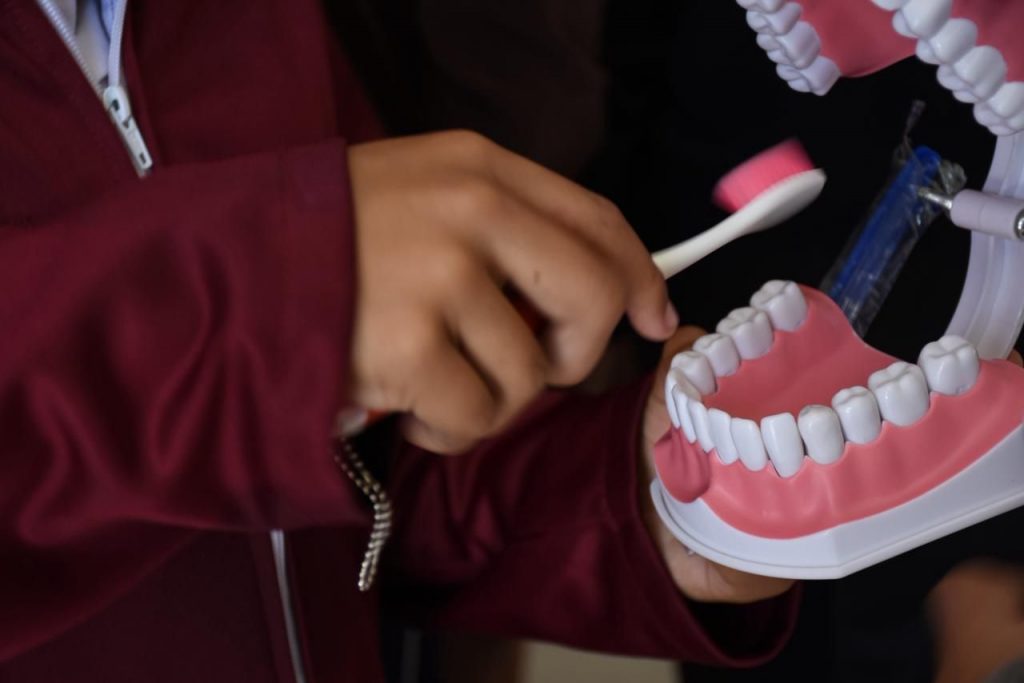 Durante las jornadas se ofrecieron pláticas de higiene oral; detección de placa dentobacteriana con tableta reveladora; enseñanza de técnicas de cepillado y uso de hilo dental; aplicación de barniz de flúor; entrega de cepillos dentales; dinámicas lúdicas y orientación a docentes, madres y padres de familia.