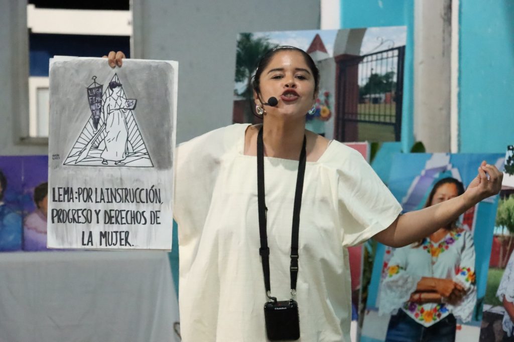 Como parte de la experiencia y el intercambio con las y los asistentes, la compañía Corriendo con Lobas repartió un cuadernillo, redactado en maya y en español, con fragmentos de las biografías de las mujeres que, con su esfuerzo y más allá de convencionalismos, hicieron historia en Yaxkukul.